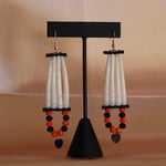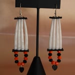 • Made with XL smooth white Dentalium shells, black deer leather, faceted glass beads, and carved jet star beads.