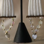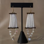 • Made from XL smooth white Dentalium shells, deer leather, bi-cone crystal beads, 18k gold seed beads, rhinestone beads, and mother of pearl heart beads. 18k gold plated hooks and findings.